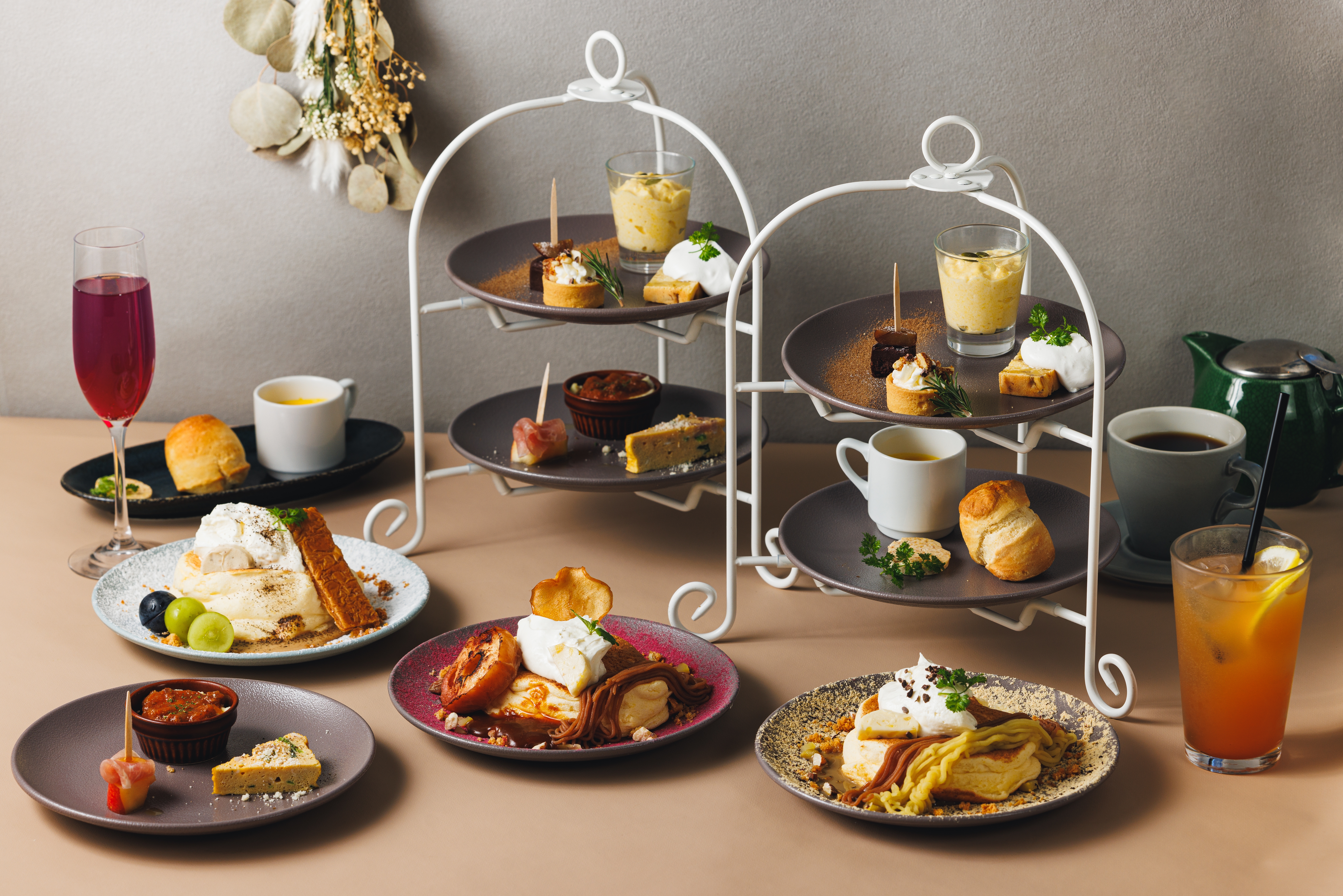 秋の味覚を堪能できるアフタヌーンティーを好評販売中。秋限定のパンケーキとあわせてお楽しみいただけます。